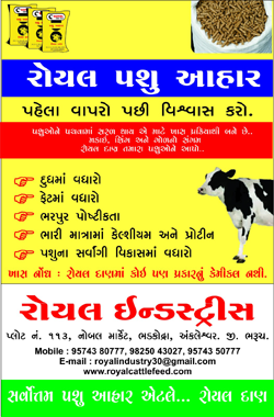 ROYAL CATTLE FEED is one of the best manufacturers of natural cattle feeds. The Company caters to the needs of the milk producers of Gujarat and Maharashtra. Company operates a 300 MT per month plant, with a state-of-the-art Quality Control Laboratory.